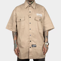 A Work Shirt bege é um clássico que pode ser facilmente combinada de diversas maneiras com outras peças da Treze Core.