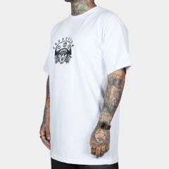 Confeccionada em tecido 100% algodão, a Camiseta branca Cangaceiro, com estampa frontal e nas costas, a arte é em referência a um dos mais conhecidos personagens da história do Brasil, o Lampião um anti-herói da cultura nordestina. É confortável pra ser usada o dia todo, no trampo ou no role, tem uma modelagem maior que o padrão pra um caimento mais style, com costuras reforçadas, ela foi feita para durar muito!