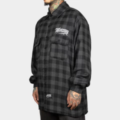 Camisa work shirt manga longa xadrez preta, muito versátil as camisas xadrez passaram por muitas subculturas do punk rock, grunge ao hip-hop, seu tecido flanelado é confortável e aquece, tem fechamento em velcro nos punhos e modelagem work shirt, com ombros e bolsos mais largos.